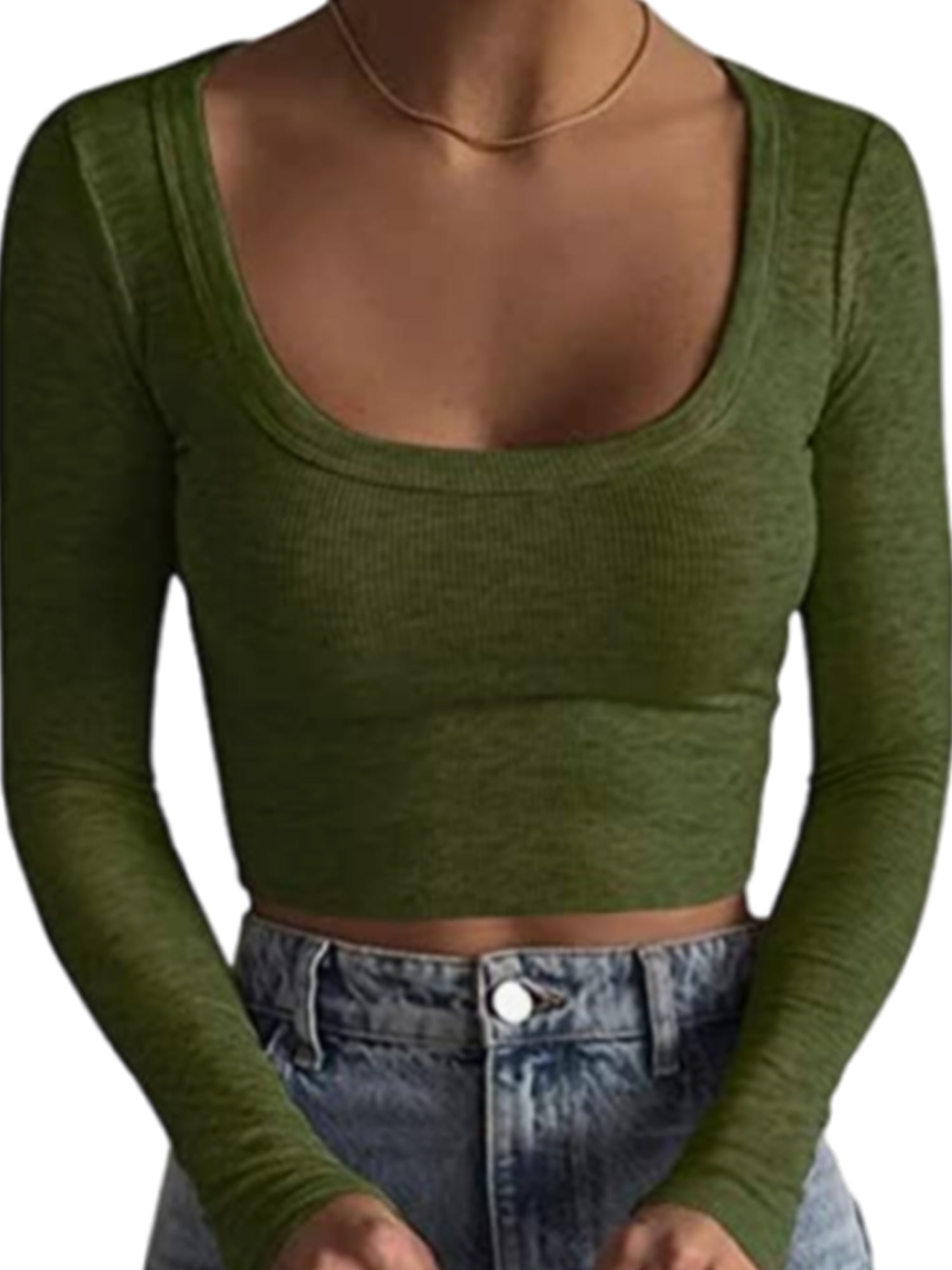 Vigorbear Women Square Neck Long Sleeve Crop Top Ribbed Knit Slim Fit Bodycon Skinny Cropped Tee Shirts Blouse Streetwear Walmart Com