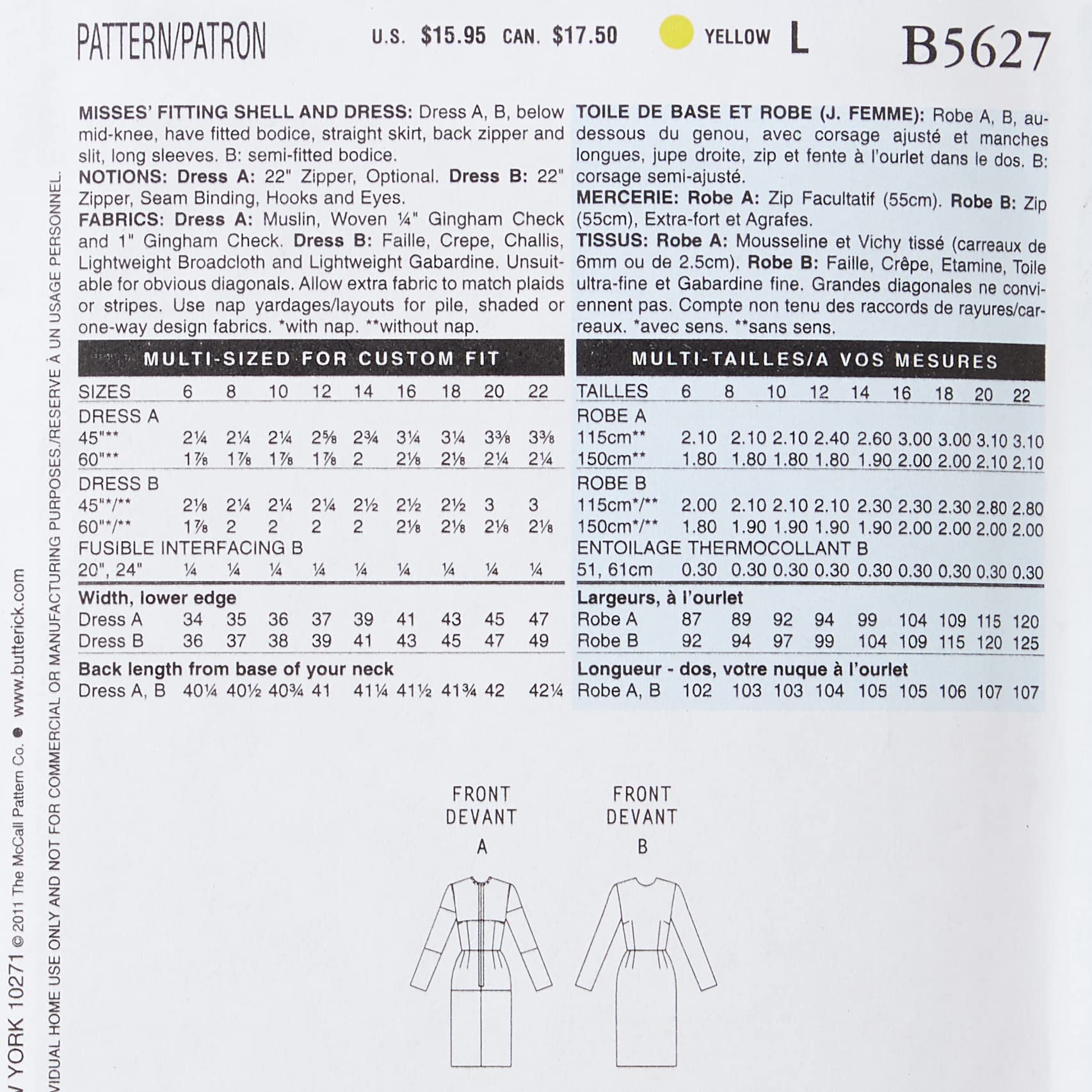 Butterick Patterns B5627 Size 16 Misses Fitting Shell And Dress Amazon Co Uk Home Kitchen